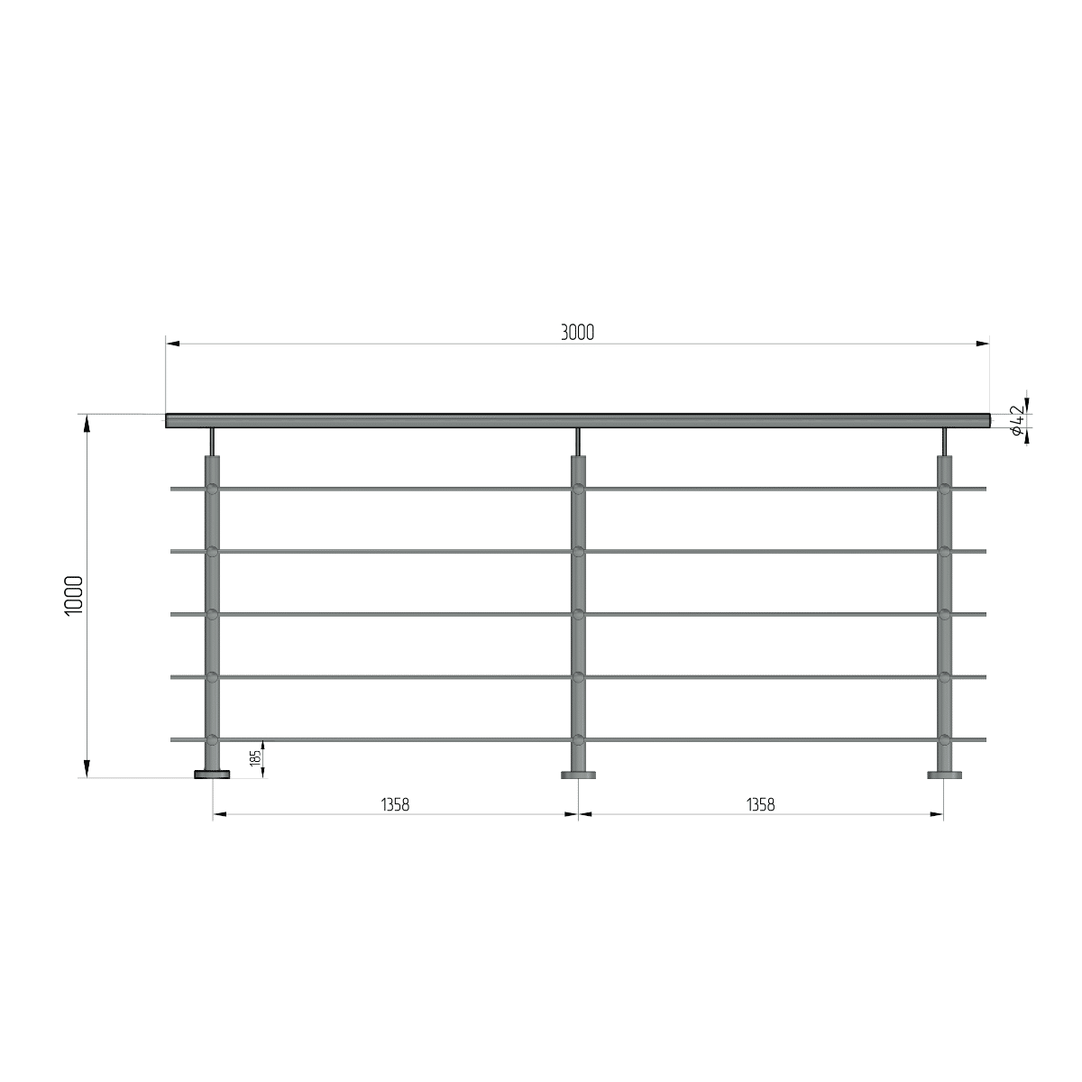 • 3 stk toppmonterte stolper i dim Ø 42,4 mm, høyde 960 mm