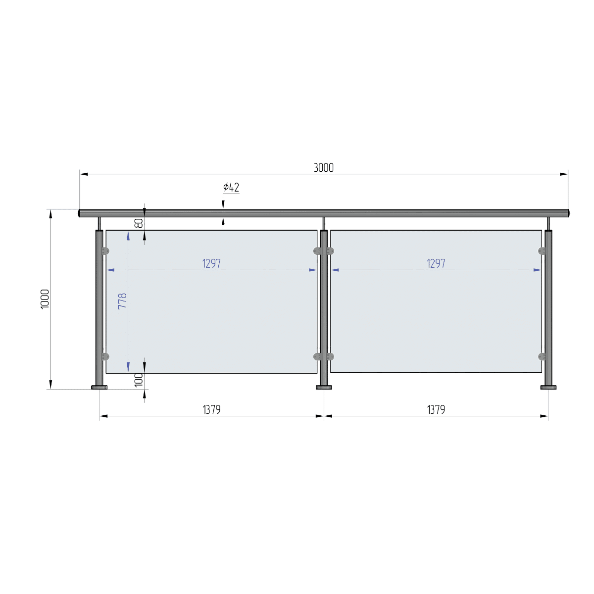GLASSREKKVERK TOPPMONTERT, LENGDE 3 METER