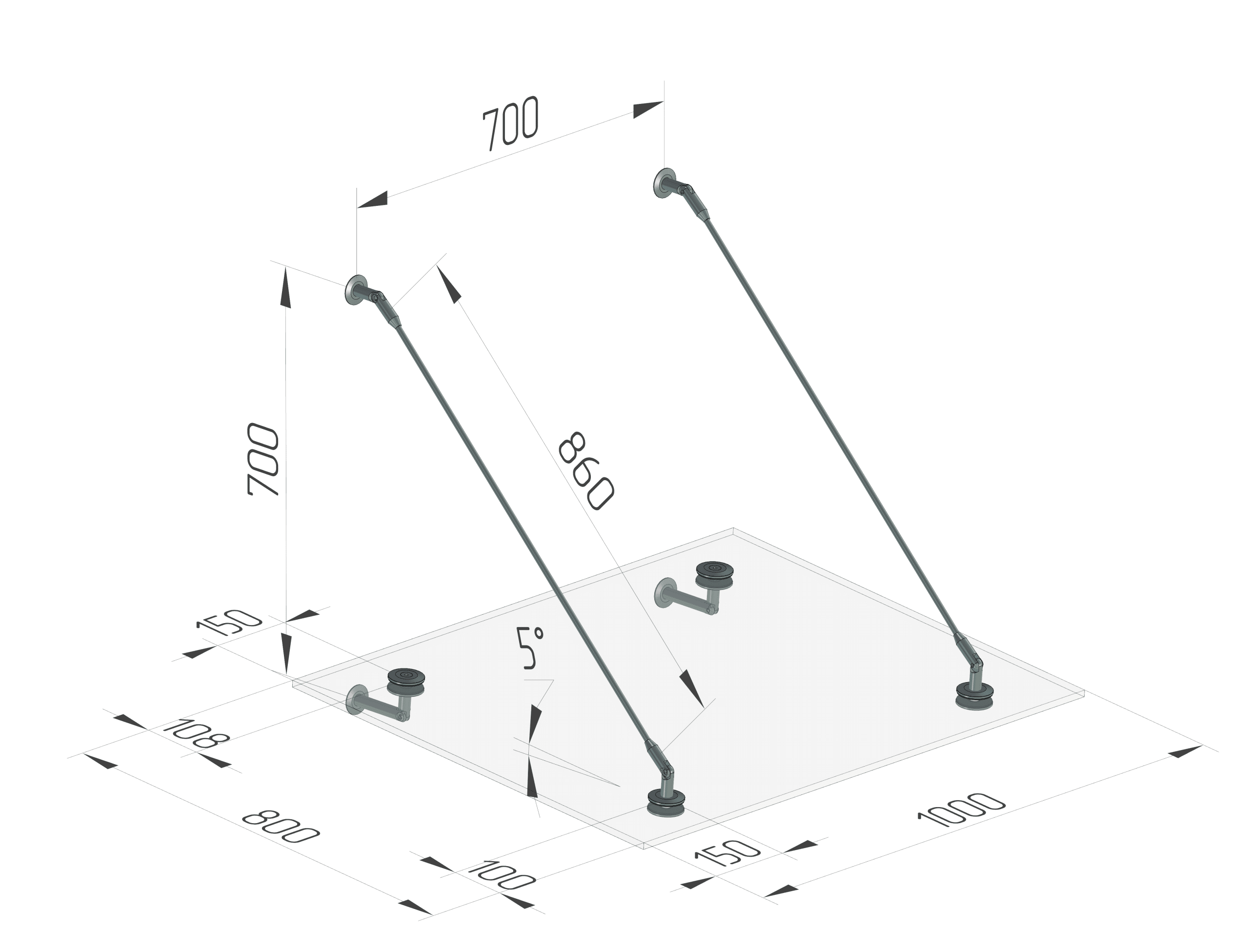 Glassbaldakin størrelse 1500 x 900 mm med 2 stk oppheng