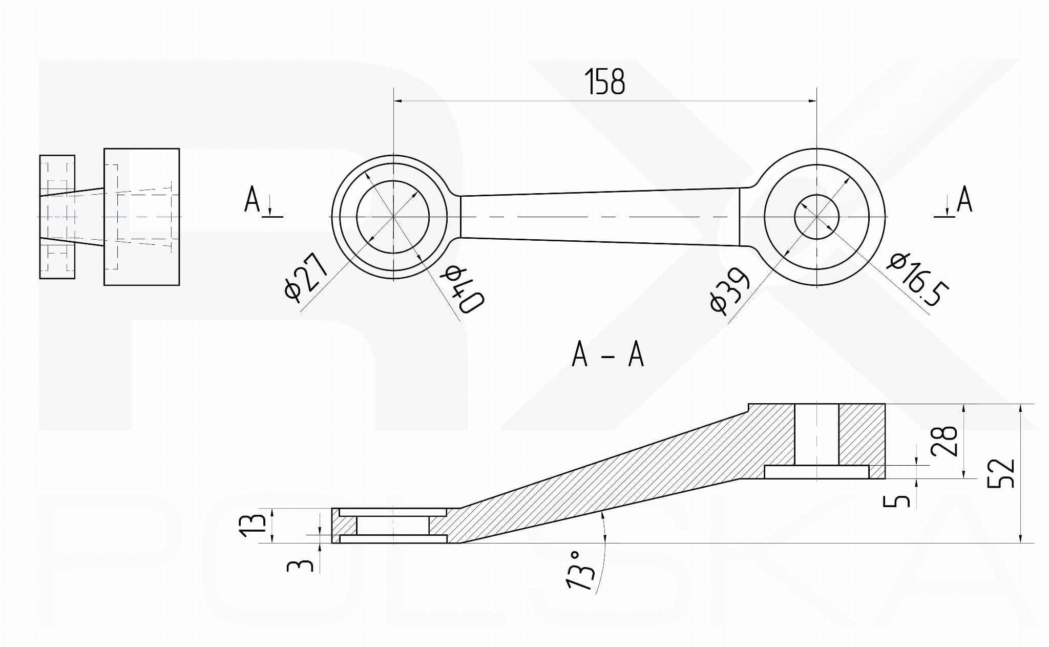 - Ø 27mm – monteringshull for spissholder (roterende)
