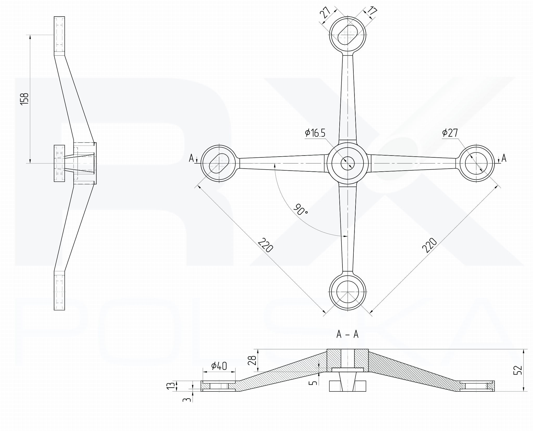 - Avstand mellom aksene til hullene som fester punktholderne – 220 mm