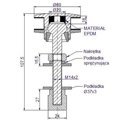 Punktfeste for glass – 50 mm med dekket mutter, AISI 304, SATIN