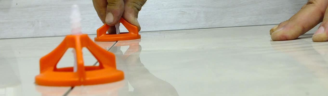 Nivelleringsskruen brukes sammen med Nivelleringsklips med gjenger. Nivelleringsklipset plasseres under flisen, og deretter skrus Nivelleringsskruen på til flisene ligger helt jevnt med hverandre.